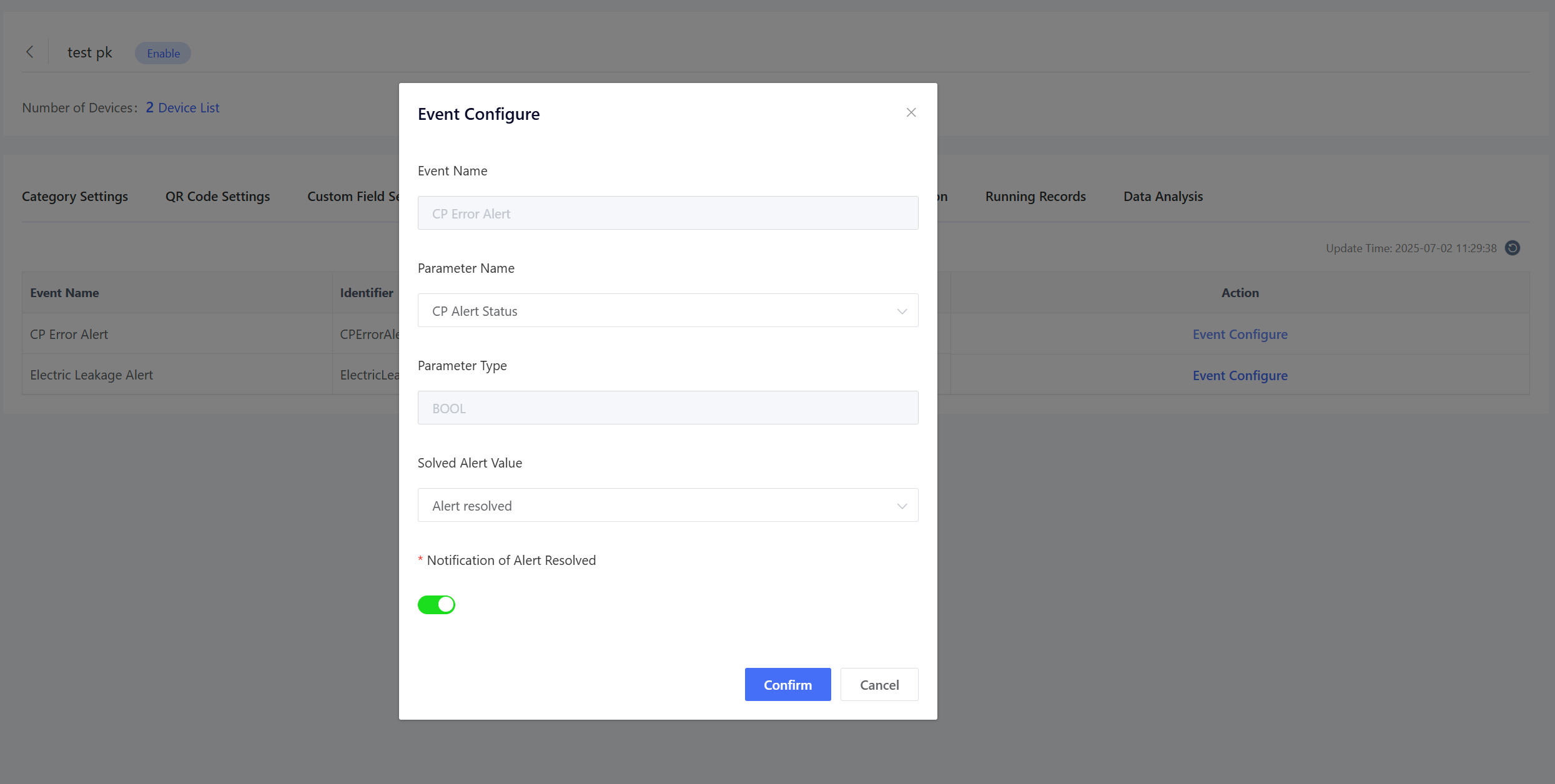 This feature is used to configure parameter values for resolving alerts. Scenario: When a device is detected to return to normal after it has reported a fault or alert event for a certain period of time, it is desired to report an event to resolve the fault or alert status of the device.