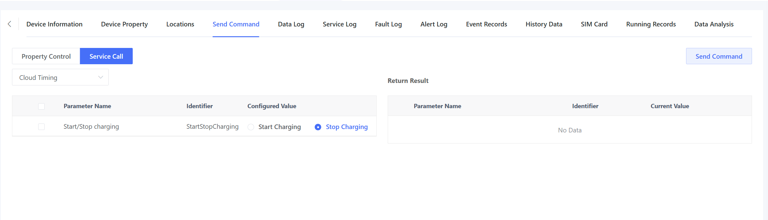This feature is used to configure whether the TSL event can be displayed and controlled in the “Device Details” - “Send Command” page.