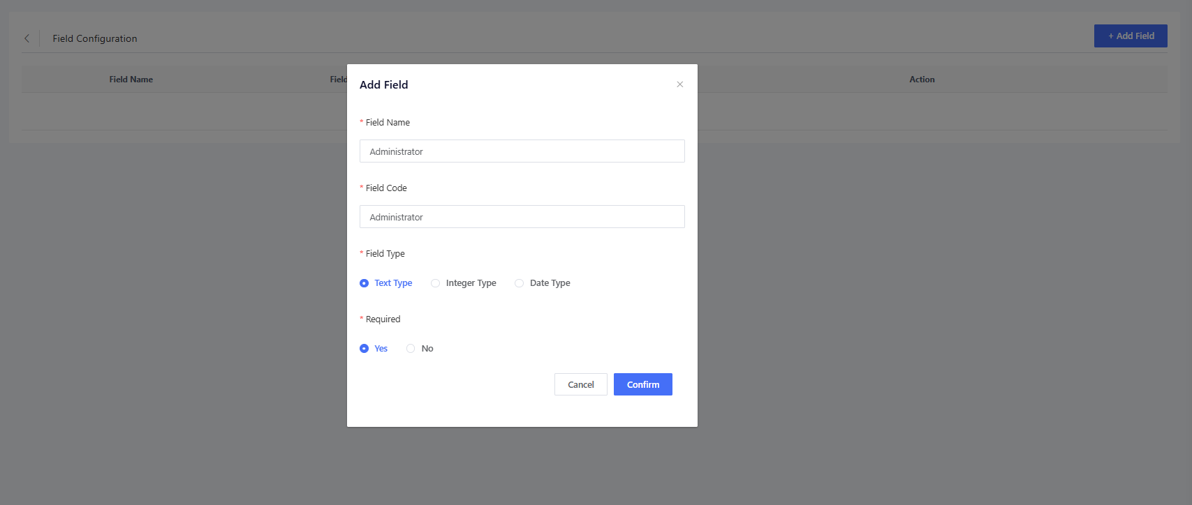 In addition to the default fields listed above, if you want to add custom fields to further identify installation sites, click “Installation Field Settings” to customize additional fields that will be displayed when a new installation site is adde