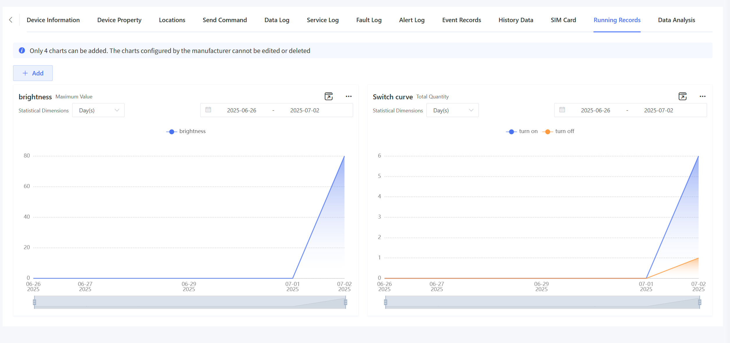 Display data analysis charts for the device. For configuration and usage instructions, please refer to Data Analysis.