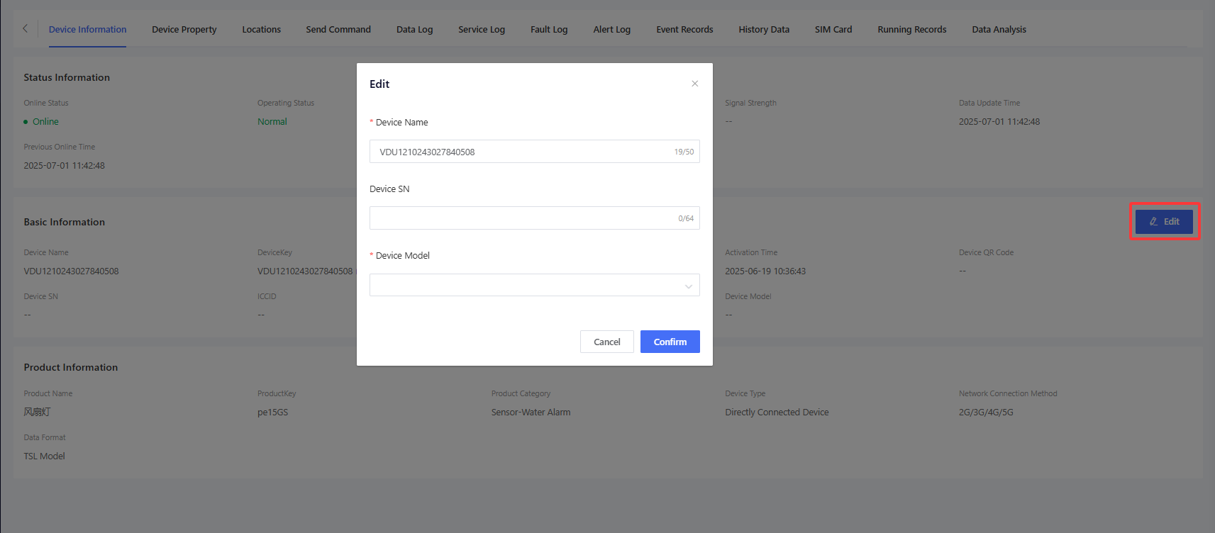 Manufacturers can edit device names and device SN, but subordinates cannot edit any information.