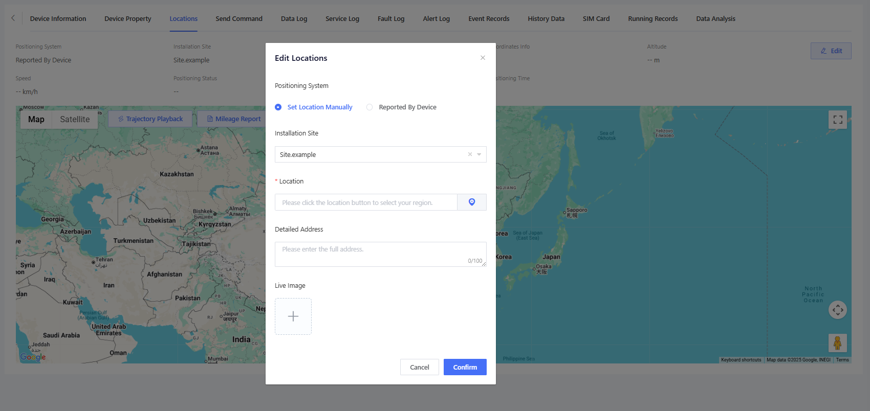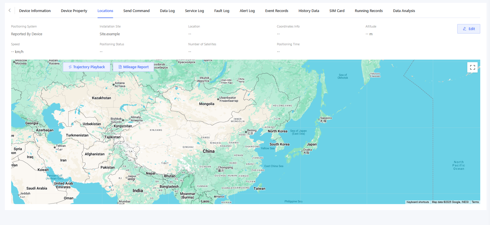 Display the location information reported by the device. For non-mobile devices without positioning capabilities, you can click “Edit” - “Set Location Manually” to manually mark the device's location.