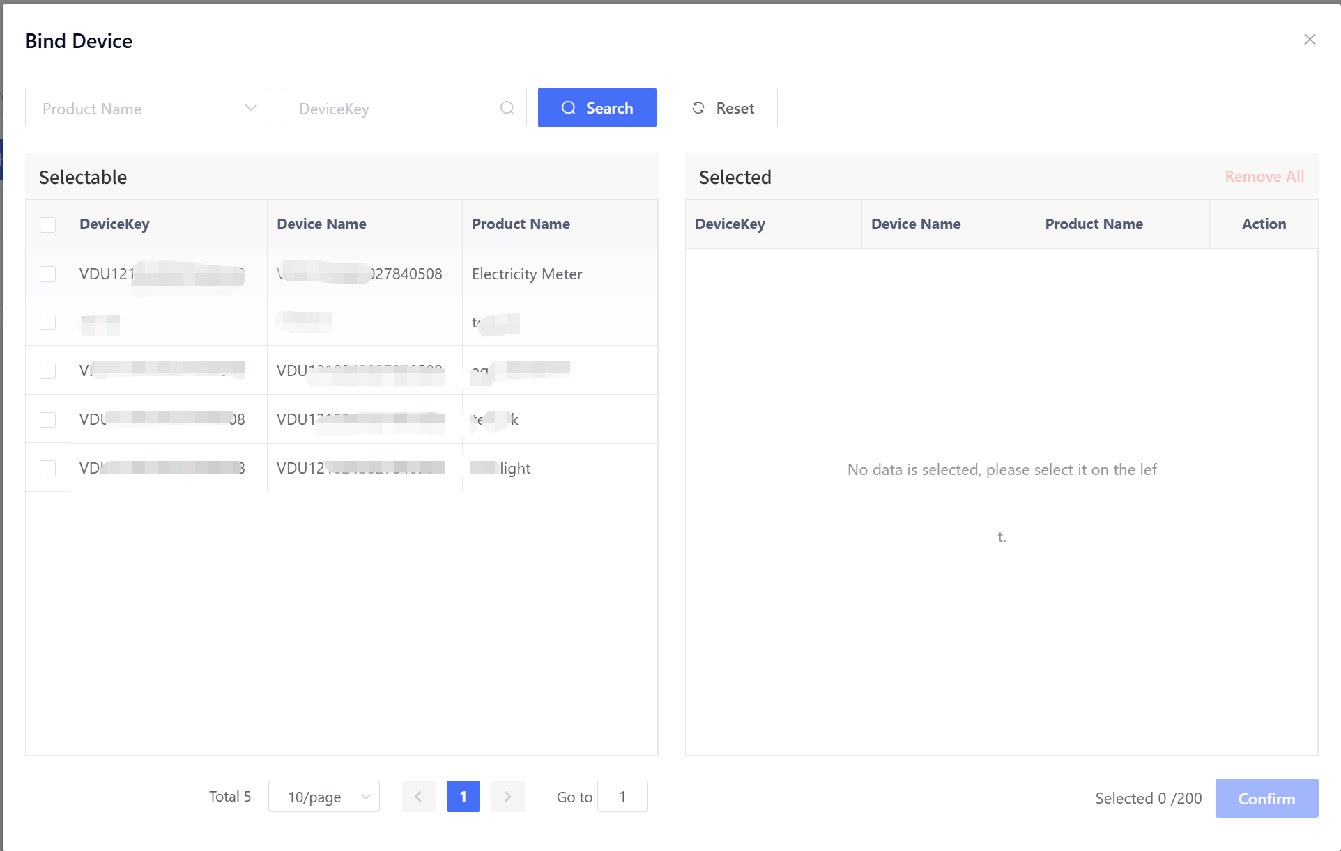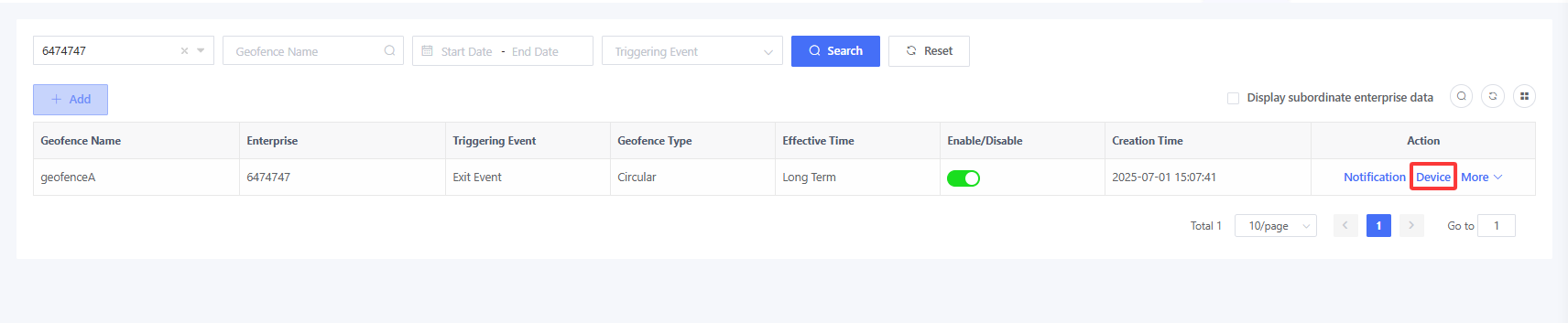 After creating the geofence, click “Device” to bind devices that are subject to this geofence. When bound devices trigger an enter/exit event, an alert will be generated.