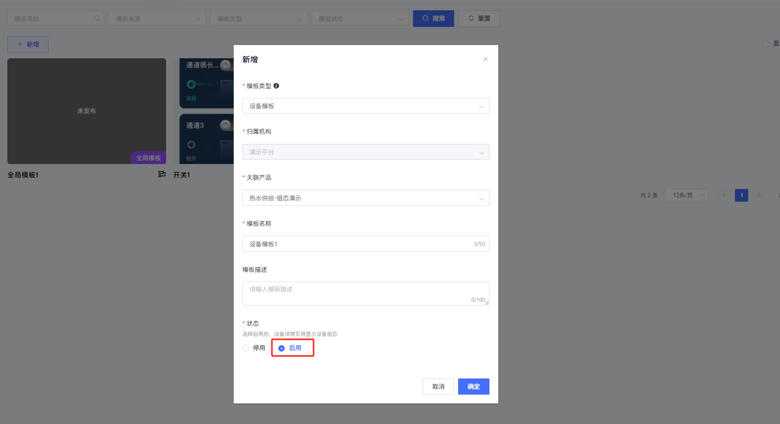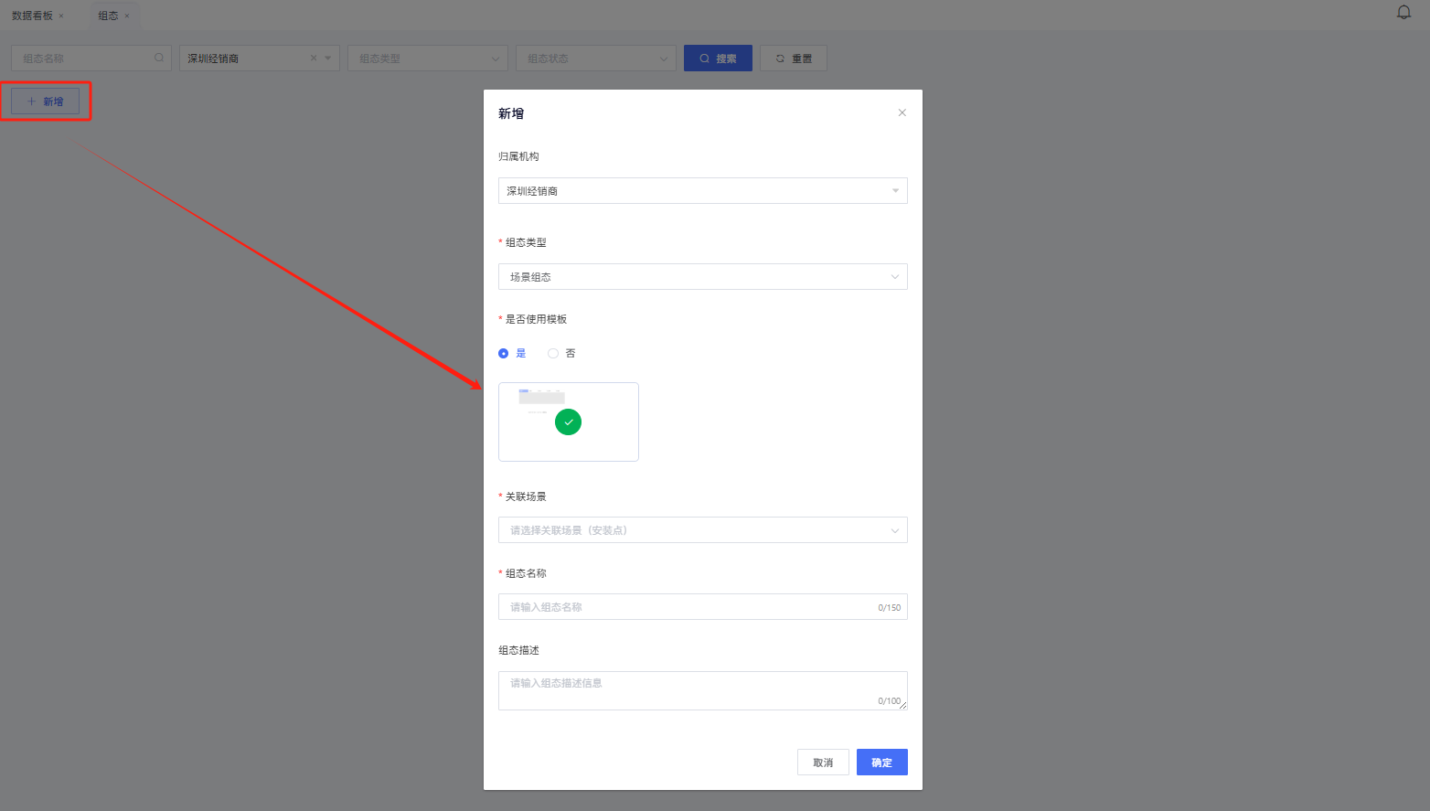 通常由厂商创建组态模板,下级机构可在创建组态时使用厂商创建的模板。