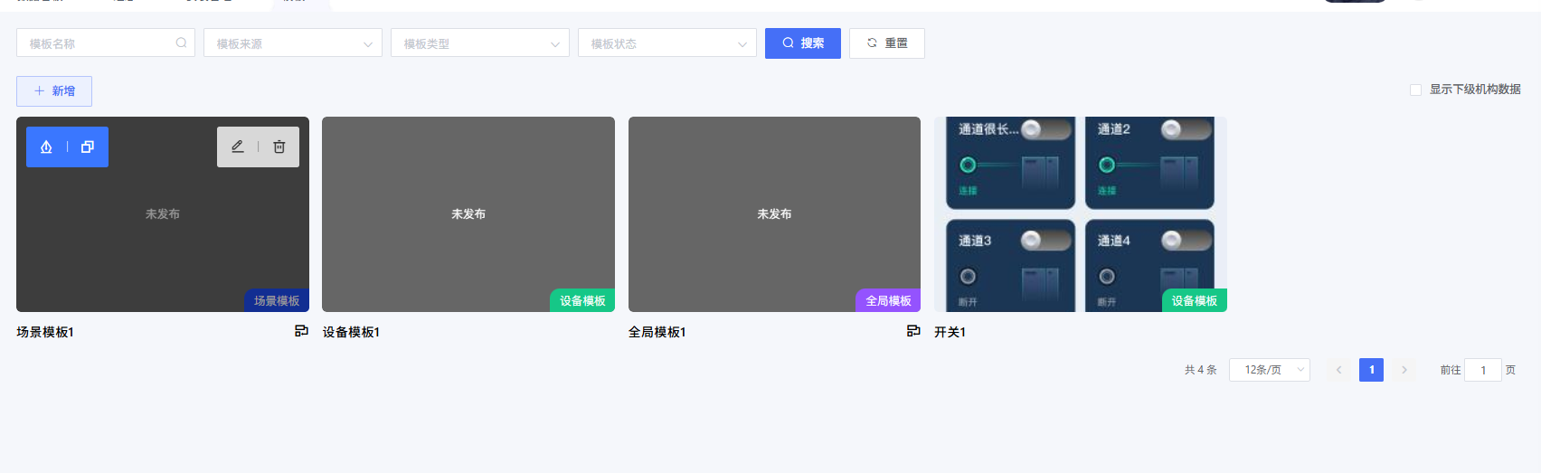 - 全局模板:以当前机构为维度,展示整个机构的组态信息