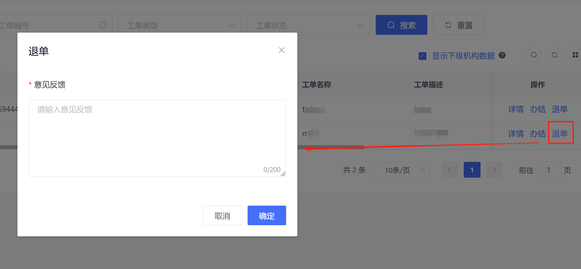工单处理包括派单、强制结单、办结、退单等流程,以下按照流程进行说明。