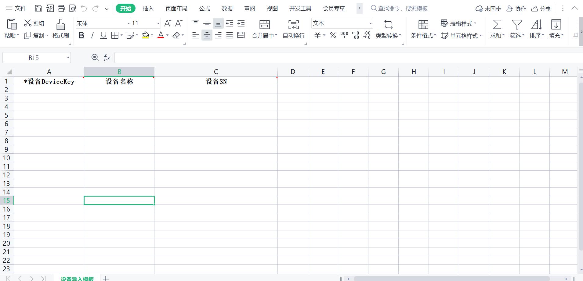 下载设备导入模板,模板展示: