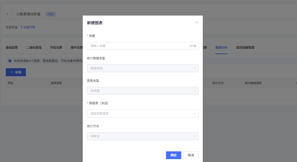 点击新增弹出数据分析弹窗,输入对应参数: