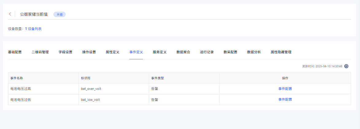资产管理SaaS文档中心 用于配置事件解除告警的参数值,使用场景为设备上报故障告警事件一段时间后设备检测到已恢复正常,希望上报事件来解除设备的故障告警状态。