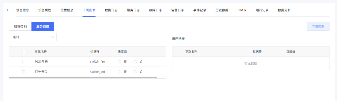 开启后可在设备详情-下发指令页面控制该属性,关闭后则不展示。